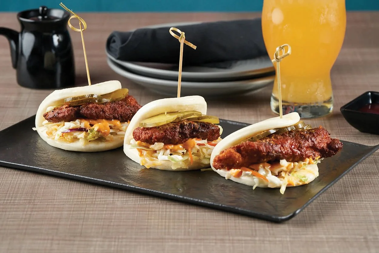 Steamed bao originated in China and spread throughout East Asia as a market-side staple sold from street carts and night markets for their portability and soft, handheld appeal. Ling & Louie’s interprets the dish through a Korean-American lens by pairing crispy fried chicken in spicy chili sauce with pickles, Asian slaw and aioli, tucked into pillowy steamed buns reminiscent of traditional Taiwanese gua bao. $13. www.lingandlouies.com.