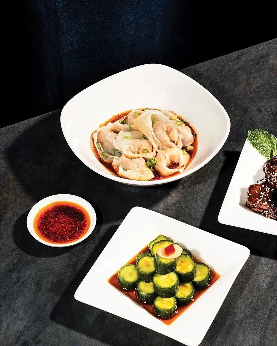 Beyond dumplings, the menu offers savory wontons, bao buns, greens, noodles and wok-fired specialties. Standouts include the shredded Kurobuta pork fried rice, chicken fried noodles, Persian cucumber salad, string beans with minced garlic, Shanghai rice cakes with shrimp, and black pepper beef tenderloin.